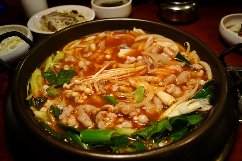 지쳐 쓰러진 소도 벌떡 일으킨다는 낙지는 예로부터 원기회복에 뛰어난 음식으로 몸이 피로하고 지쳤을 때 즐겨 먹었다. 쫄깃쫄깃하고 싱싱한 낙지와 매콤한 국물은 중독성 있는 매운맛으로 자꾸만 생각난다. 버섯과 함께 즐겨도 좋고 쇠고기와 라면 등의 취향에 맞는 음식을 골라 함께 즐겨도 좋다. 깨알정보 tip 지방이 거의 없고 타우린과 무기질, 아미노산이 다량 함유되어 있어 조혈 강장 작용을 한다. 기력이 떨어졌을 때 원기를 돋우는 역할을 하며 표고버섯과 함께 먹으면 낙지에 부족한 비타민D와 식이섬유를 보충할 수 있다.