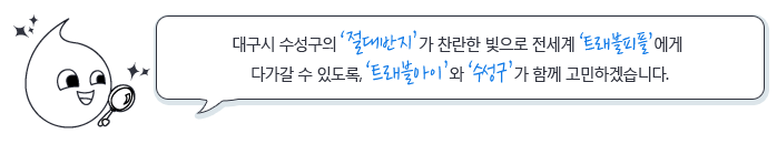 대구는 무더운 도시로 잘 알려져 있다. 수성구는 이러한 대구 날씨를 관광자원화 한 유일한 지역일 것이다. 그 대표적인 예가 바로 수성못이다. 이는 단순히 고고한 역사를 품은 채 그저 고요하기만 한 저수지가 아닌 품격 있는 수성구 구민들의 정신을 상징하고 있다. 즉, 구민들의 희망과 의지, 열정의 장엄하고 강인한 생명력도 함께 느낄 수 있다. 그러면서 수성못을 중심으로 형성된 친환경 근린공원은 이제 대구시민들에게도 추억과 낭만의 공간이 되고 있다.