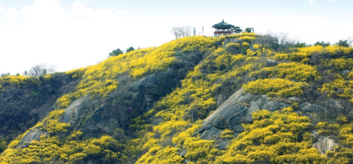 응봉산은 매년 봄 개나리로 화려하게 물든다.2