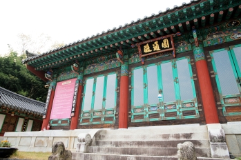비봉산 자락에는 목조보살좌상을 모시고 있는 원각사가 있다.