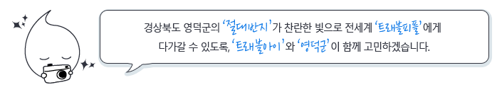 영덕이 21세기 동해안의 최고 관광휴양지로 자리잡게 된 것은 전통 있는 어촌마을을 그대로 보존하며 관광지로 개발하려고 노력한 힘이 컸다. 아직도 영덕 어촌마을에는 드라마 속에 등장했던 빨간 등대와 그 앞에 펼쳐진 코발트색 바다, 항구에 정박해 있는 어선들 사이로 몰려드는 갈매기 떼가 도열한다. 이러한 진풍경은 영덕 바다에서만 볼 수 있다는 것을 대게철 이곳에 한번쯤 들러본 사람이라면 반드시 공감하는 생각 아닐까?