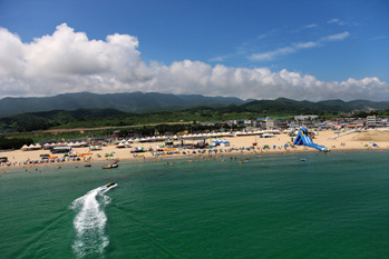 장사해수욕장은 대중교통과 편의시설이 잘 연계되어 있는 휴양지이다.