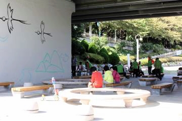 온천천에서 휴식을 취하는 시민들의 모습.