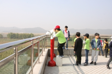 2층 전망대에서는 드넓게 깔린 갈대밭과 그 안에서 살아가는 생물들을 관찰할 수 있다.
