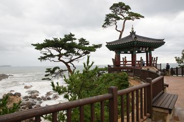 해안절벽 위에 위치한 의상대는 노송과 어우러진 모습이 인상적인 곳이다.