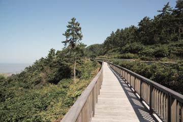 참고로 백수해안도로는 영광 9경 중 첫번째 절경이다. 원불교 영산성지를 지나 해안선을 따라 이어진 이 도로의 총 길이는 16.8km. 밋밋하게 바다만 따라가는 길 아니냐고? 아니다. 바다를 끼고 드라이브하는 동안 갖은 볼거리가 '튀어'나온다. 해당화꽃 20리길과 기암괴석이 숨어 있다 나타나듯 눈앞에 펼쳐지는 곳. 드라이브 중 잠시 허리를 펴고 싶을 땐 건강 365계단에 내려서 가벼운 걷기운동을 해보자. 해안도로가 지나는 영광 염산면 일원에서는 갯벌축제가 열리기도 한다. 너른 갯벌의 질퍽한 질감을 느껴보고 싶을 땐, 잠시 주차하고 내려가서 갯벌을 밟아보자.