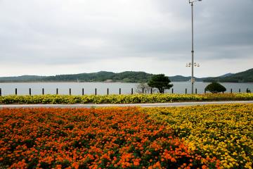 풍력발전기도 아니고, 풍력가로등이 반겨주는 저수지. 불갑저수지 수변공원의 풍경이다. 불갑사에서 자동차로 20분 정도 달리면 불갑저수지에 수변공원에 닿는다. 동네의 흔하디흔한 저수지 아니겠냐는 '불신' 따위는 저수지에 빠뜨려 보자. 이곳은 호남에서 손꼽히는 대규모 저수지다. 인공폭포와 더불어, 풍력발전 방식으로 에너지를 얻는 풍력가로등이 바로 불갑저수지 불변의 명물. 또 형형색색의 꽃들도 가득 심어놨다. 일렁이는 저수지 물결에 시선을 맡기며, 불어오는 바람에 뺨을 내어주자. 그리고 비릿한 물의 냄새에 한껏 취해봐도 좋다.