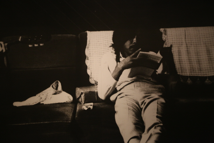 작가 이외수의 젊은 시절 독서하는 사진이다.