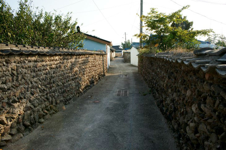 보통 성인 키보다 훨씬 높은 담장은 돌이 지그재그로 배열되어 있어 견고함을 자랑한다.