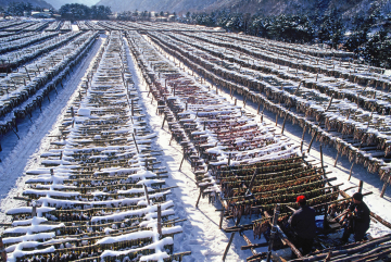 진부령 인근에 위치한 용대리에는 국내 최대 규모의 황태덕장이 자리 잡고 있다.