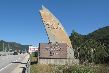 용대리 황태마을을 알리는 표지석이 도로변에 세워져 있다.