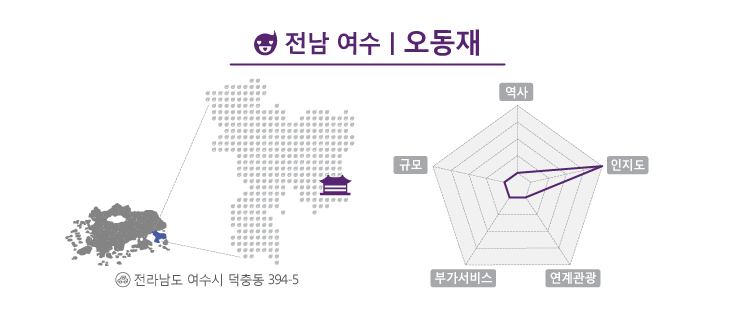 • 오동재는 2012 여수 세계박람회 이후 지정 숙박시설로 이용될 정도로 인지도를 얻었다.