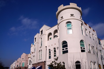지중해마을, 그리스 아테네 파르테논 신전을 닮은 건물이 유럽에 온 듯 착각을 일으킨다.