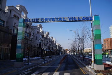 마을 입구에는 블루 크리스탈 빌리지(Blue Crystal Village)라고 쓰인 푸른 아치가 반긴다. 이는 새로 마을을 설립할 당시에 붙인 이름이지만, 너무 어렵다는 의견이 있어 지금은 주로 ‘지중해마을’, ‘유럽마을’로 알려져 있다. 아치를 지나자 공간이동을 한 것처럼 새하얀 벽과 푸른 돔 형 지붕을 가진 건물들이 쭉 늘어서 있는 길이 펼쳐진다. 마을은 주도로를 중심으로 프랑스와 그리스 테마로 나뉘는데, 각각 프로방스와 산토리니를 실제로 방문해보고 벤치마킹했다. 그리스 테마 구역에는 아테네 파르테논 신전을 축소해 놓은 모양의 건물이 늘어선 골목도 있다.