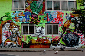 홍대의 랜드마크로 자리매김한 벽화 거리. 알록달록한 색채가 홍대의 개성을 나타낸다.