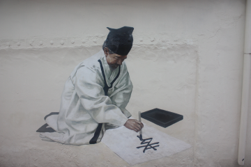옛 구암서원 입구에는 과거 구암서원의 모습을 담은 벽화가 그려져 있다.