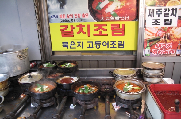 생선골목-점심시간 집집마다 생선 굽기에 정신없다.