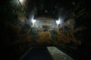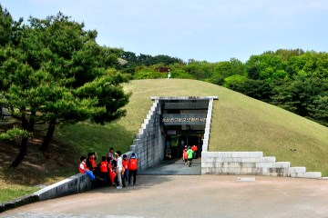 송산리고분군을 재현해 놓은 송산리고분군모형전시관 입구(좌)와 왕릉을 재현한 공간(우).
