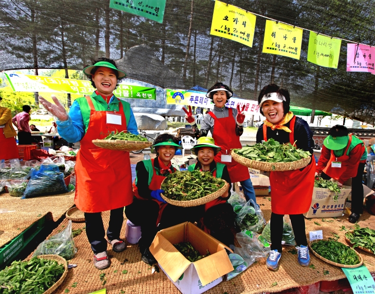 양평 산나물 축제에서 양평 주민들이 용문산 산나물을 자랑스레 내보이고 있다.
