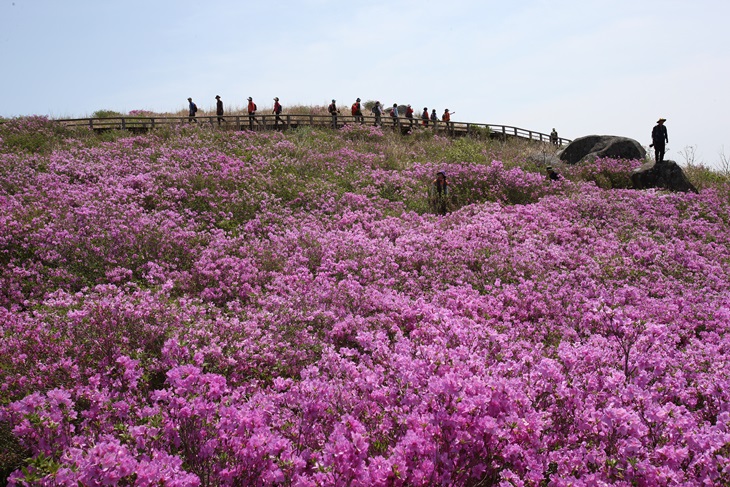 황매평전을 붉게 물들이는 철쭉은 단아하고 연한 색깔을 띤다. 절로 자란 산철쭉은 진분홍빛과 함께 서로 다른 빛깔과 어울려 환상적인 풍경을 만들어낸다. 차를 세워두고 철쭉을 둘러보러 걸어야 하는 시간은 2시간 정도로, 부담 없이 즐길 수 있으니 늦깎이 봄꽃여행이 필요한 이들은 산청군 황매산으로 가자. 쉬이 발걸음을 떼지 못할 철쭉 향연을 만날 수 있을 것이다.