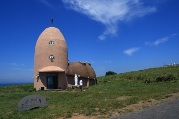 소라모양의 건물로 유명한 마라도 성당의 모습.