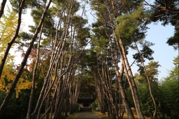 이락사 가는 길. 나무들이 한길로 심어져 있어 찾아가는 것이 어렵지 않다.