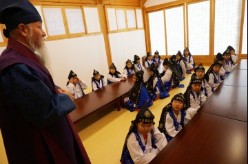 작년 12월에 진행한 서당체험에서 예절교육을 받은 뒤 신나는 전통놀이를 즐겼다.청운문학도서관에서 가장 활발하게 벌어진 체험활동은 서당체험이라고 해도 좋을 것이다. 2014년 12월 9일부터 19일까지 진행되었던 프로그램인 <‘365 종로창의버스’ 타고 도서관 나들이>에서 진행한 한옥체험 서당나들이가 그렇다. 총 240명의 종로구 내 초등학생 및 학부모들이 하루동안 서당예절체험, 독서코칭, 전통놀이 체험 등 다양한 교육을 한옥세미나실과 마당에서 받았다. 올해 학기제로 시작된 청운 까치서당도 그렇다. 다만 이 두 사이에 차이가 있다 청운 까치서당이 보다 장기적으로 운영된다는 것. 1학기는 2015년 4월 25일 토요일에 이미 시작되었으며 매주 토요일, 8월 1일까지 진행된다. 종로구 내 초등학생 1~3학년생 15명이 뽑혀서 이미 1일차 교육이었던 방석 예절을 배웠다. 2학기는 8월 22일부터 시작되며 1학기가 끝날 때 즈음 다시 2학기 학생을 모집할 예정이다.
