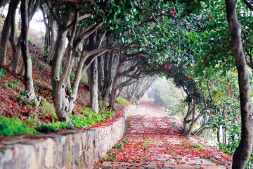 ▲ 지심도(거제) = 하늘에서 보면 섬 모양이 마음 심(心) 자를 닮은 지심도는, 멀리서 보면 섬 전체가 숲으로 둘러싸인 자연 명소다. 특히 동백나무가 많아 동백꽃이 피고 지며 붉은 카펫을 만든다. 2월 중순에서 3월 초에 동백꽃은 절정을 이루며 낭만적인 분위기로 ‘사랑의 섬’이라 불린다. 일제강점기 유적도 남아 있어 자연과 역사를 함께 둘러볼 수 있다.