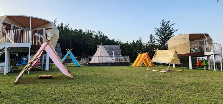 지난 3월 개장한 배알도별빛야영장은 섬진강과 바다가 만나는 곳에 조성된 복합형 야영장이다. 카라반 10대를 포함해 단계적으로 총 100면 규모까지 확대 운영될 계획이며, 샤워장·개수대·화장실·세족장·커뮤니티센터 등 기본 시설을 갖췄다. 야영장에는 버스킹 공연장, 네트 체험시설, 어린이 집라인, 바닥분수 등 체험시설도 함께 조성돼 가족 단위 이용객이 머물며 즐길 수 있는 공간으로 꾸며졌다. 낮에는 섬진강변과 해안 경관을 즐기고, 밤에는 노을과 별빛을 감상할 수 있는 점이 특징이다. 야영장 명칭에는 지역의 인문학적 의미도 담겼다. 인근 정병욱 가옥에 보존된 윤동주 시인의 유고 「하늘과 바람과 별과 시」의 상징성과 배알도 풍광을 반영해 ‘별빛야영장’이라는 이름을 붙였다. 자연 경관에 문학적 의미를 더한 공간으로, 다른 야영장과 차별성을 갖는다.