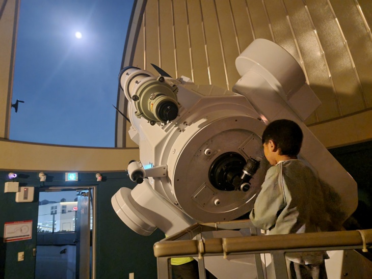 노원천문우주과학관에서 천체 관측을 하는 어린이