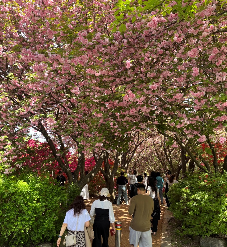 봄철을 맞아 전주시 완산공원 꽃동산에 겹벚꽃과 철쭉 등이 만개하면서 시민과 관광객에게 봄나들이 장소로 제공되고 있다.