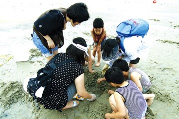 • 신시도에서는 낚시 체험과 갯벌 체험이 가장 활발히 이루어지고 있다. 사진은 갯벌 체험을 하는 체험객들.