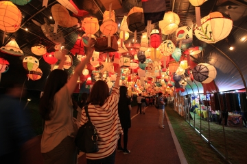 제각기 다양한 소원을 빌며 소원등을 거는 사람들.