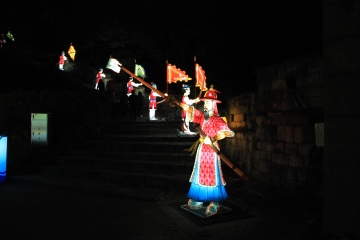 한편 진주성 안쪽에서는 한국의 전통 풍습을 비롯해 이름 높은 예인이기도 했던 기생들을 등으로 만든 것, 진주대첩을 등으로 재현한 것 등을 볼 수 있다. 교방으로 이름 드높았던 고장의 특성을 살리는 한편, 이 축제의 유래가 된 역사적 사건을 잊지 않기 위함이다. 이처럼 온 곳이 색색으로 물든 것 같아도 그 색색의 등에서 읽어낼 수 있는 내용은 제각기 다르다. 500년 전 남강의 등불이 조선군에게는 희망을, 일본군에게는 위기감을 안겨줬다. 그렇다면 지금의 진주남강유등축제에서는 무엇을 볼 수 있을까? 그 답은 진주남강유등축제의 수많은 등불을 보며 직접 답을 찾아보기 바란다.