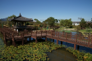 소원을 들어주는 북으로 연결해주는 나무다리. 여름에는 이 주변이 황홀한 연지가 된다.