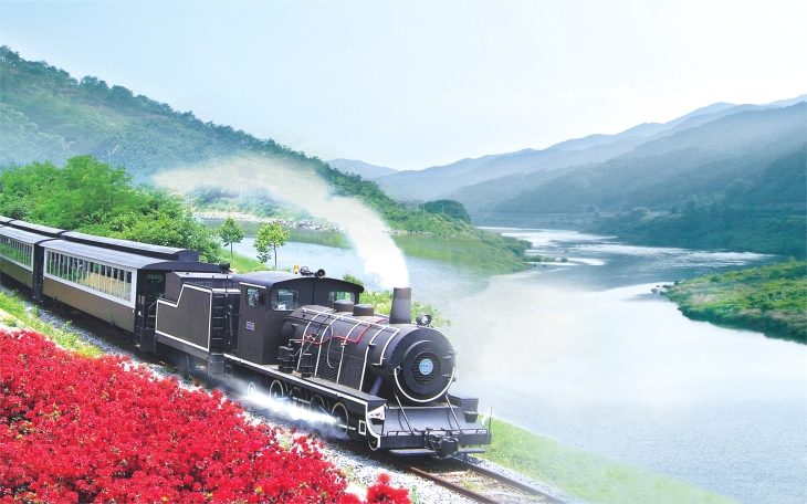 섬진강 변을 달리는 정감넘치는 증기기관차