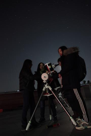 천문올림피아드 겨울 학교에 참가한 청소년이 관측 실습을 하고 있다.