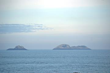쌍여(왼쪽)과 기암괴석(오른쪽)은 하섬에서 볼 수 있는 독특한 해안지형이다.