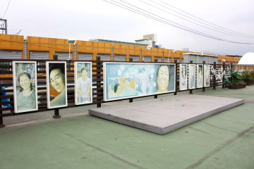 양동문화센터 앞에 다양한 미술 작품들이 전시돼 있다.