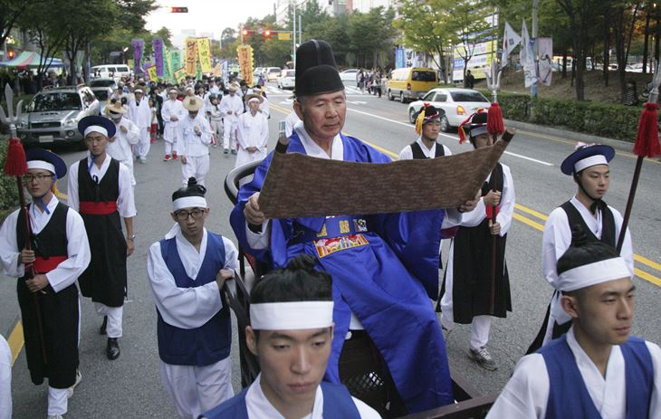 문정공 시호 봉송 행렬을 시작으로 동춘당 문화제의 막이 열린다.