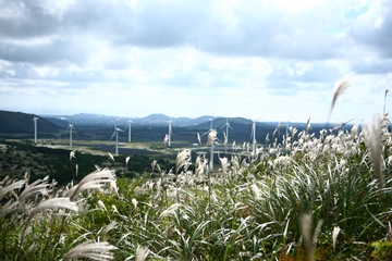 가시리 풍력발전단지는 넓은 목초지에 있어 보는 이로 하여금 시원함을 느끼게 한다