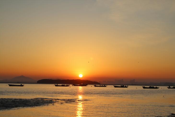 동검도에서 일출과 일몰을 가장 아름답게 볼 수 있다는 동검선착장으로 향한다. 동검도 일출은 강화도 전체에서도 손꼽히는데, 다른 해변가 일출과는 달리 해수면 위에 떠오른 오메가를 볼 수는 없지만, 세어도나 빌딩 사이로 올라오는 해를 또렷하게 확인할 수 있다. 아울러 저 멀리 불그스름한 여명 빛으로 물든 영종대교의 풍경도 기대할만하다.