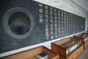 세종대왕의 애민사상은 여러 면모에서 볼 수 있지만 대표적인 산물이 바로 한글이다. 세종대왕기념관에서 세종의 가장 큰 업적이라고 할 수 있는 한글 관련 기록들을 빼놓을 수 없다. 한글을 연구하며 기록된 자료들과 훈민정음 창제 과정에 대한 기록, 용비어천가 등을 통해 세종의 발자취를 좇을 수 있다. 한글실에서는 한글을 디자인화 한 목걸이, 티셔츠, 시계 등 ‘한글 문화상품 아이디어 공모전’ 수상작들도 만나볼 수 있다.