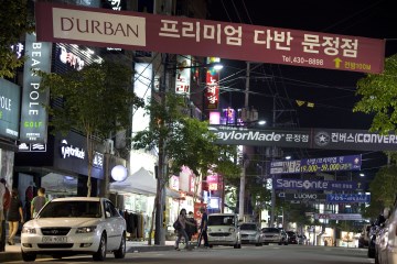 문정동 로데오거리에는 다양한 국내외 브랜드매장이 밀집되어 있다.