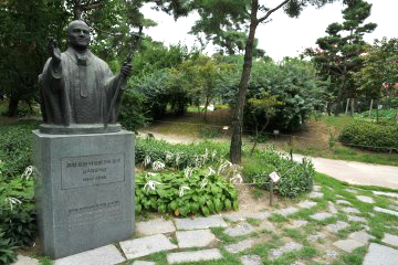 • 야외전시장에 세워져 있는 우리나라 최초의 신부인 김대건 신부의 동상.