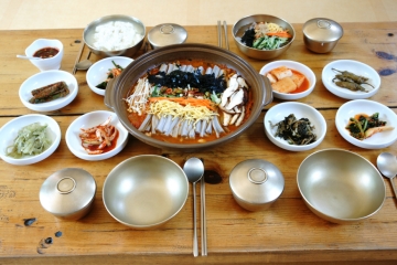 놋그릇에 정갈하게 차린 반찬과 함께 나오는 태평초의 모습이다.