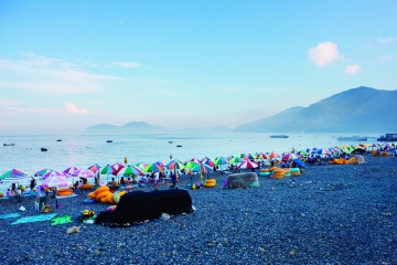 돌과 물이 만들어내는 잘그락대는 소리에 음악소리가 얹혀질 흑진주몽돌해변의 정경이 중 구조라 해수욕장과 학동흑진주몽돌해변은 들어보신 적이 있을 겁니다. 둘 다 제각기 다른 정경을 자랑하는 거제시의 유명한 해수욕장이지요. 고운 모래와 조개껍데기를 볼 수 있는 구조라 해수욕장에서는 전국뷰티바디챔피언쉽. 국제핀수영대회 등이 열립니다. 학동흑진주몽돌해변은 동글동글한 검은 자갈과 푸르고 하얀 파도가 어우러져 아름다운 정경을 이루기로 유명한 곳입니다. 특히 사그락사그락 거리며 몽돌이 파도에 움직이는 소리는 한국의 아름다운 소리 100선에 선정되기도 했지요. 그래서일까요? 학동흑진주몽돌해변에서는 아름다운 음악소리가 들리는 버스킹을 비롯해 오션 락 페스티벌, 커브댄스 페스티벌, 거제 청소년 동아리 발표회 등의 문화행사가 열린답니다.