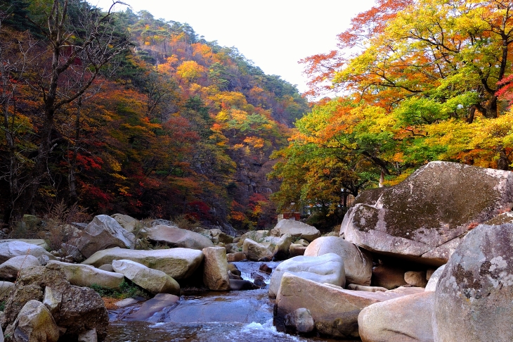 바위가 하얗고 물이 맑아 단풍이 들면 물까지도 붉게 물든다는 홍류동의 가을.
